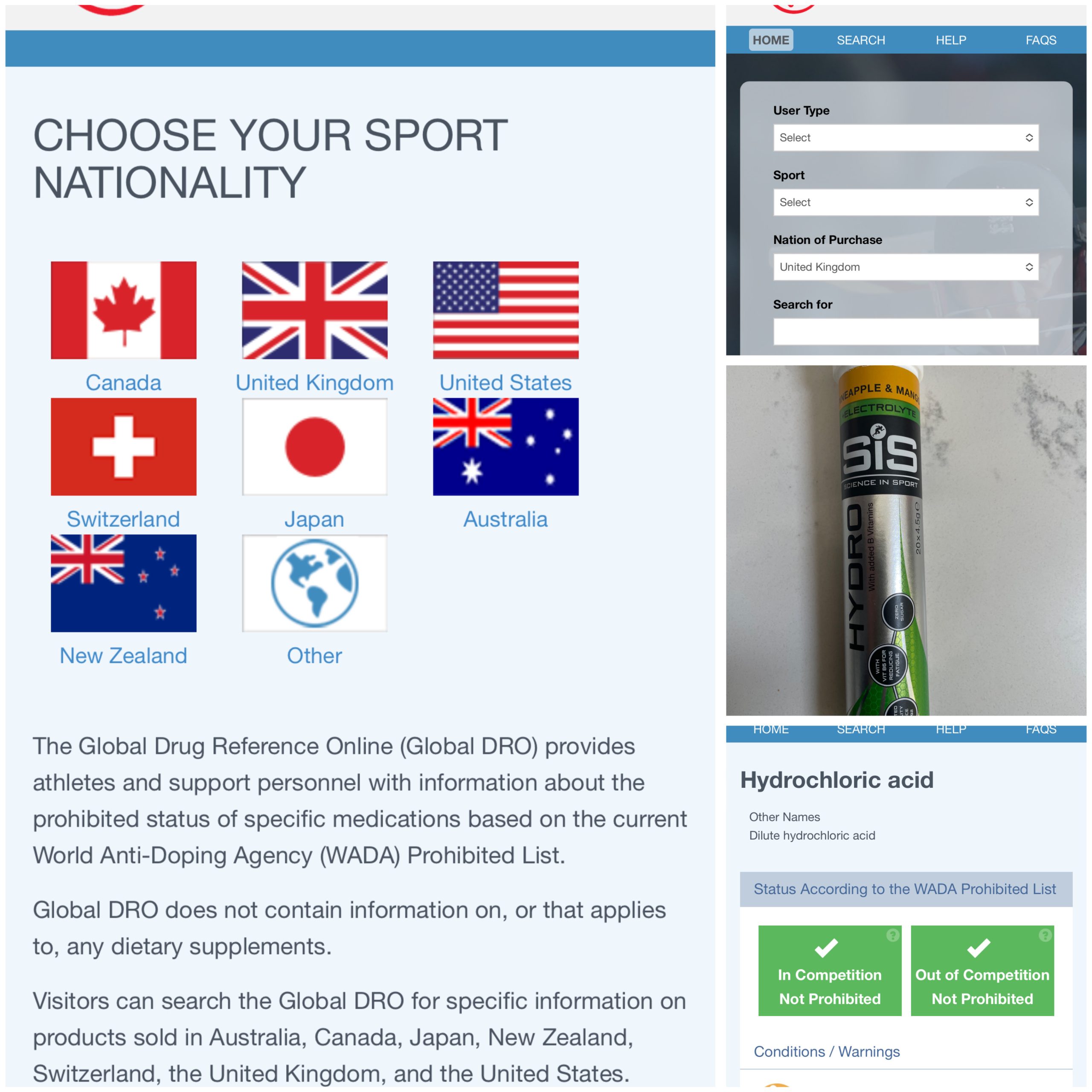User type に Athlete、Sport に Athletic、Nation of Purchase に 国(United Kingdom)を選び、息子の練習後に取っているサプリメント名 Hydrochric acid(写真↓)を入力すると