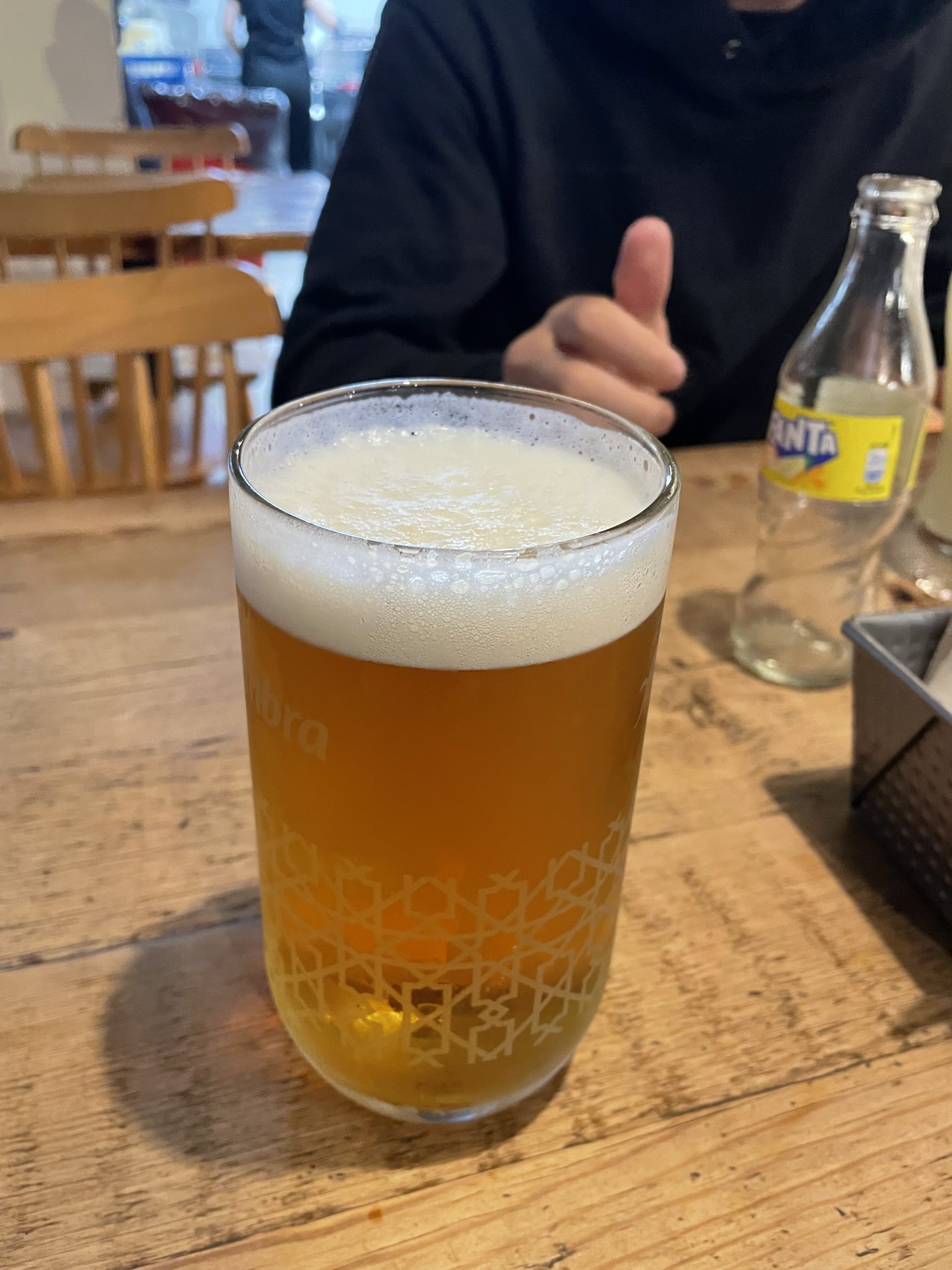 バールでは生ビールというとAlhambra(アルハンブラ)が大体出てきました。これはグラスに幾何学模様(アラベスク)が入っているのですぐわかります(下記写真参照)。この辺りの代表的なビールなのでしょうね。