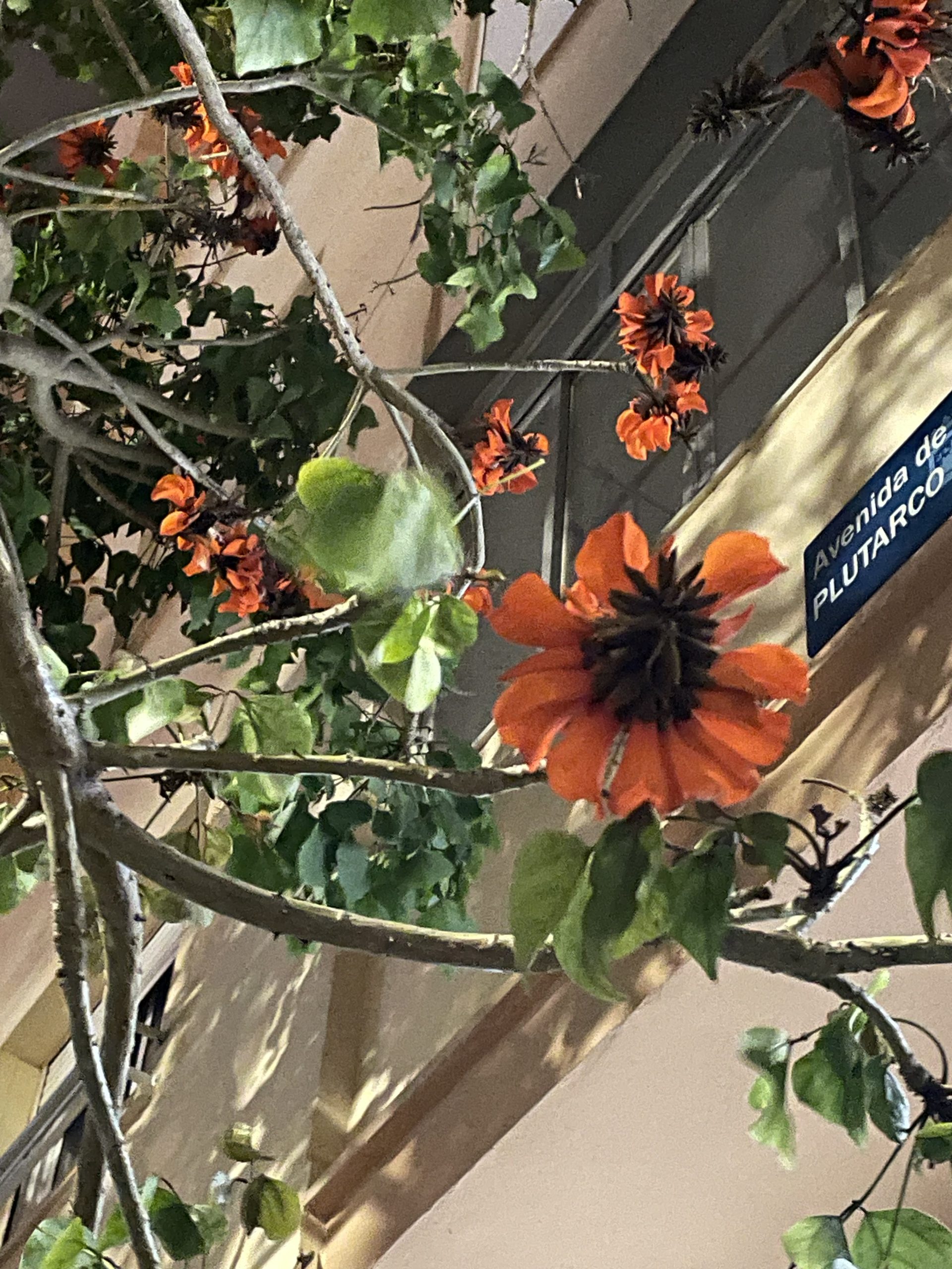 街路樹には春らしく花がたくさん咲いています。
