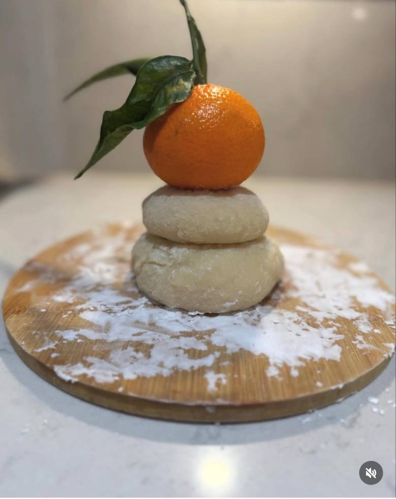 豆腐150gと片栗粉45gをレンチン3分後に練って丸めて作る鏡餅