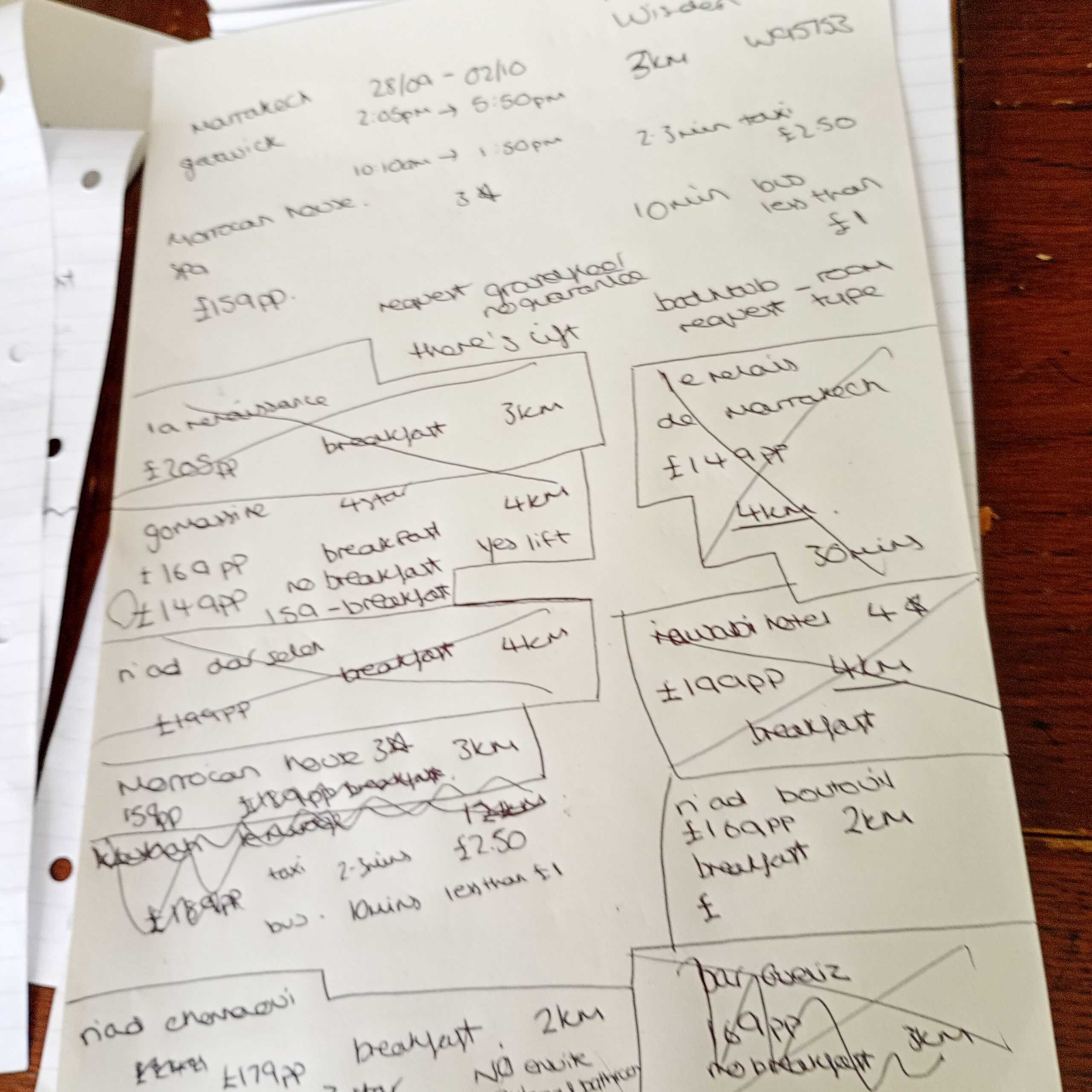 その結果として出発4日前に宿泊施設がキャンセルされたわけですが、今度はマラケシュでは希少なツインベッドルームを探す旅が始まり、