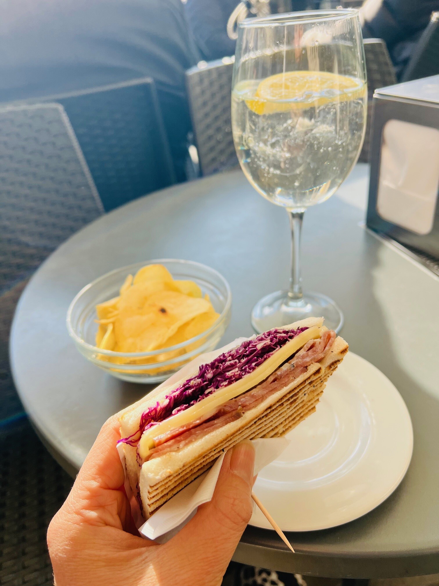なんてことなさそうなサンドイッチですが、これがまたおいしい!飲み物もすすみます。