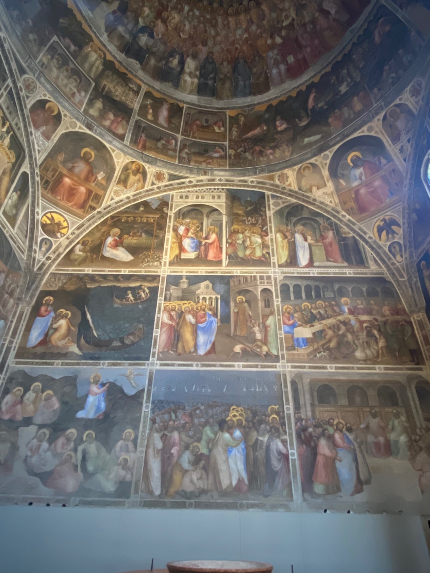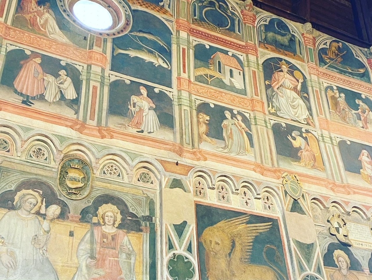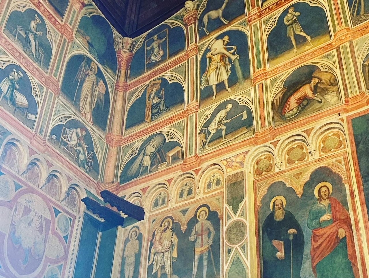 びっしりと描かれたフレスコ画からは、当時14世紀の人々の生活などが垣間見ることができ、興味深いです。