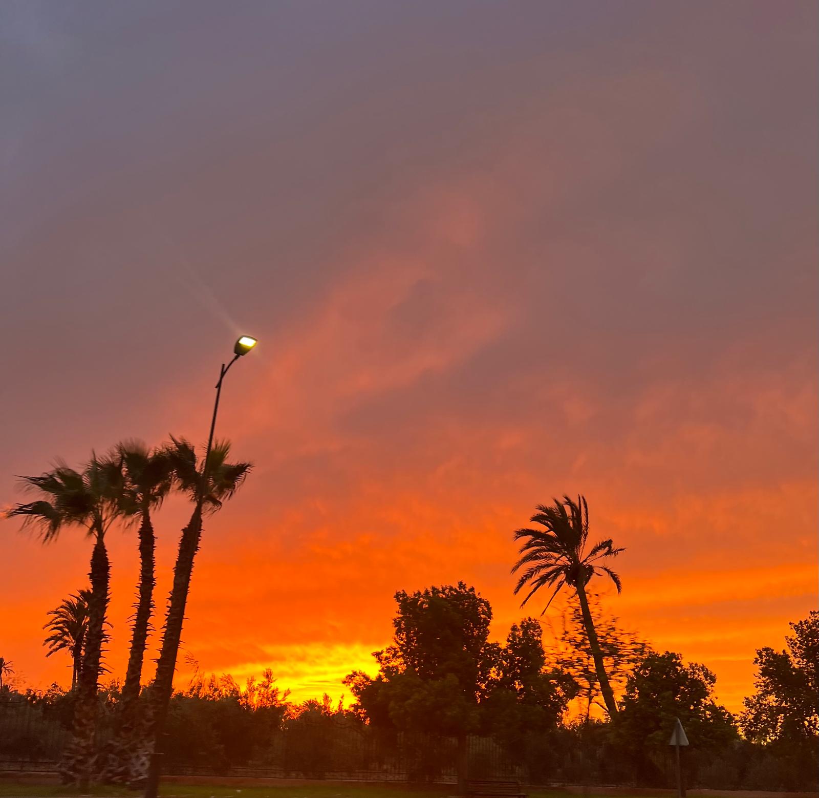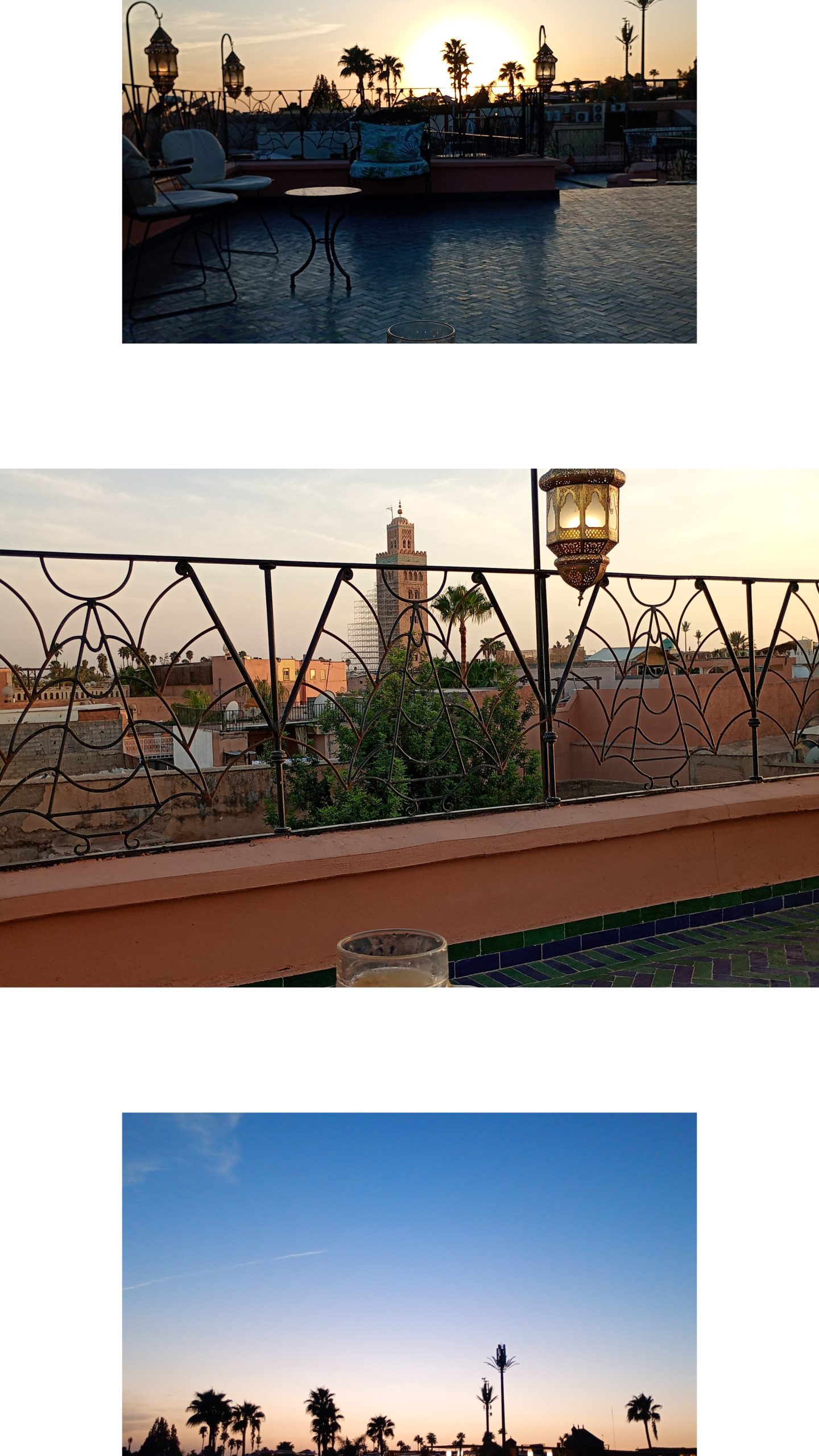 そこから眺めるサンセットとモスク。コーランの響きと共に美しいマラケシュを堪能できます。