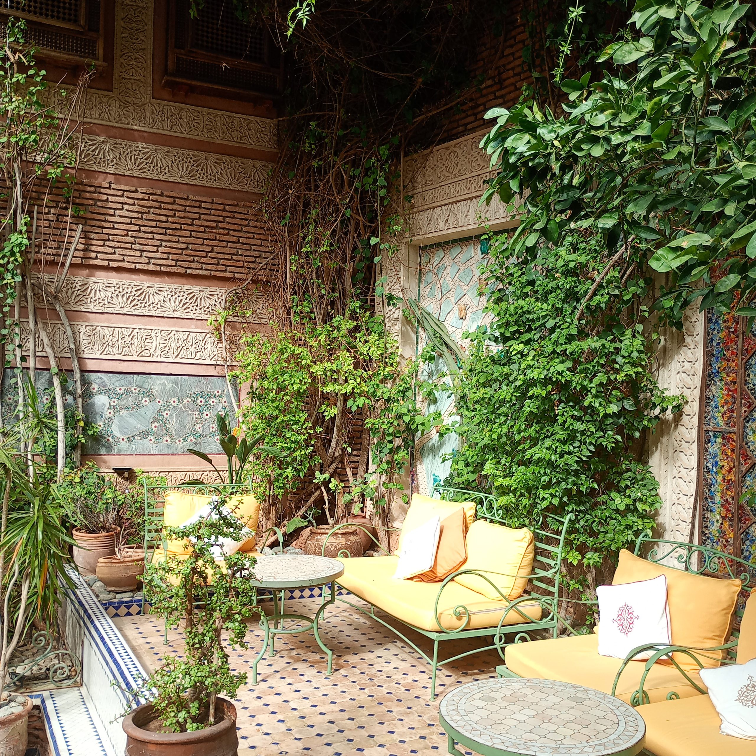 リヤドへ戻ると、またあの中庭がお出迎え。スークや広場とは別次元の世界のようです。